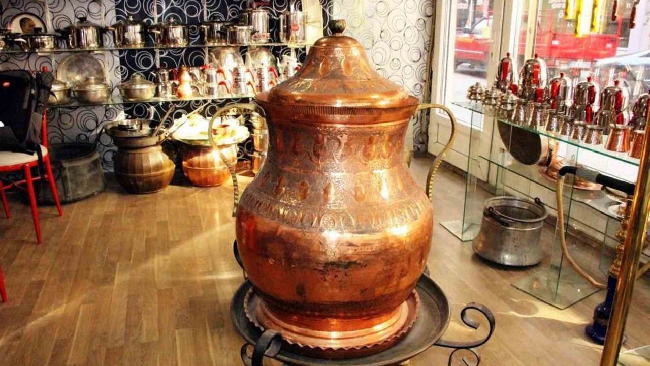 Üzerinde milyonlarca çekiç darbesi bulunan dev bakraç, İlkadım ilçesindeki dükkanda 19 yıldır sergileniyor. Eser, güvenlik kameraları ve alarm sistemleri ile korunuyor.