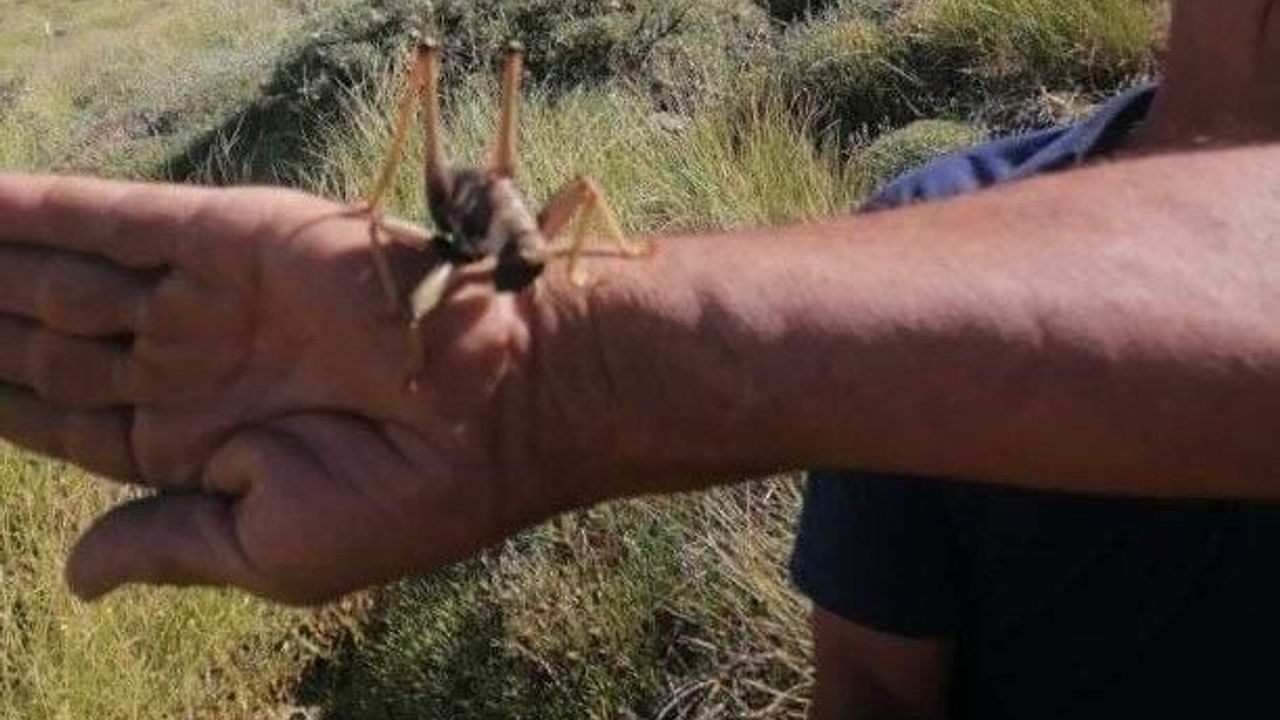Elazığ’ın Sivrice ilçesinde dağlık alanda dev bir çekirge görüntülendi.