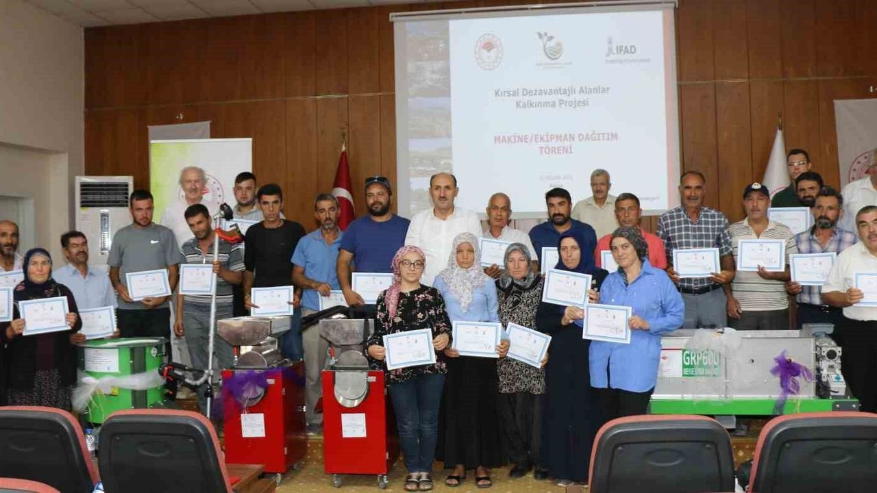 Daha sonra 20 üreticiye motorlu tırpan, 4 üreticiye salça yapma makinesi, 6 üreticiye ceviz soyma makinesi 3 üreticiye de meyve sıkma makinesi teslim edildi.