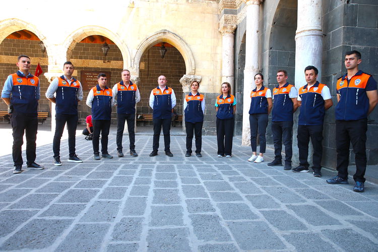 Bu kapsamda merkez Sur ilçesindeki tarihi Ulu Cami'ye gelen yerli ve yabancı turistleri karşılayan ekipler, turistlere hem güvenlik hem de rehberlik hizmeti sundu.