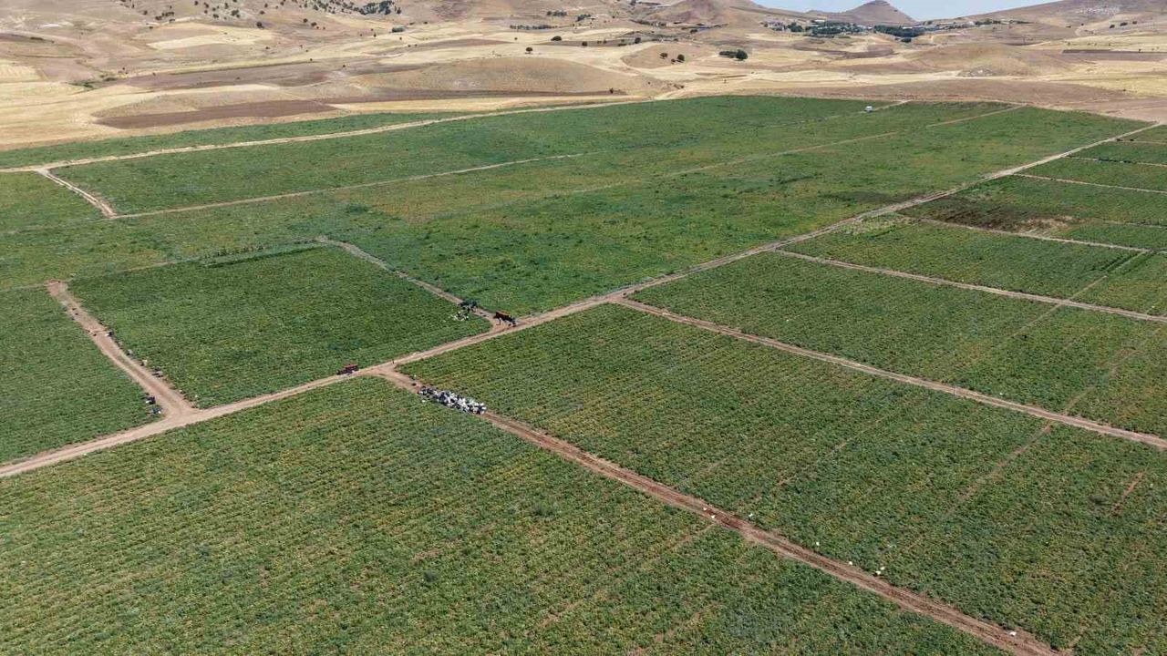 Elazığ’a 15 kilometre uzaklıkta bulunan Alatarla köyünde 2 bin dönüm alan üzerine ekilen domateslerin hasadı devam ediyor. Yüzlerce kişiyle yapılan domates hasadı, yurt içi ve yurt dışına gönderilerek ekonomiye katkı sağlıyor. Tarlada ekilen domateslerin ihracatının yanı sıra, tarla Elazığlı vatandaşlara da hizmet veriyor. Domates fiyatlarının dışarıda 25 lira olduğunu dile getiren ve vatandaşa seslenen domates üreticisi Murat Alınmış, "Gelin tarlada topladığınız domatesleri 8 liraya alın" dedi.