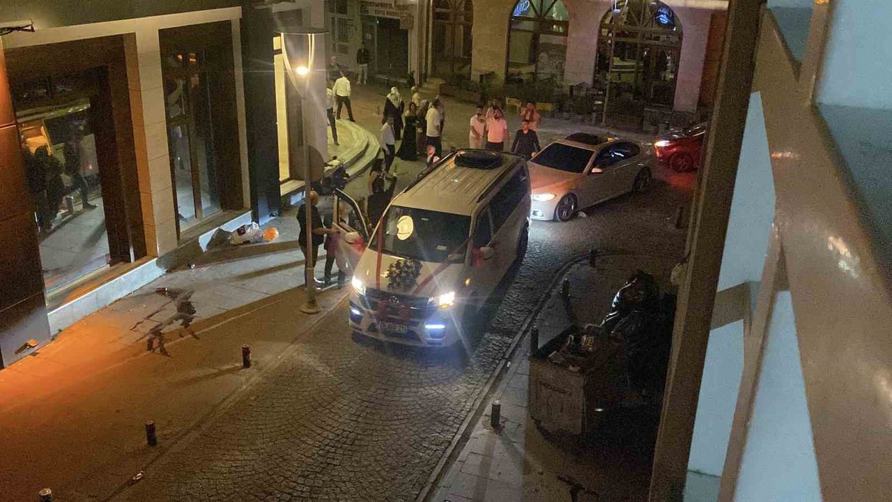 Olay, dün akşam saat 23.40 sıralarında İstiklal Mahallesi’nde Alev Sokak ile Kabaağaç Sokak’ın kesişiminde bulunan bir otelin önünde meydana geldi. Edinilen bilgilere göre, bölgedeki düğün konvoyuna dahil olan kalabalık grup arasında henüz bilinmeyen sebeple tartışma çıktı. Gergin anların yaşandığı tartışma sırasında bağrışma sesleri sokağı inletirken, bazı vatandaşlar da kavga çıkmasını önlemeye çalıştı. Birkaç dakika boyunca devam eden hararetli tartışmanın ardından olaya dahil olan taraflar, araçlara binerek bölgeden yerinden ayrıldı. O anlar saniye saniye kayıt altına alındı.