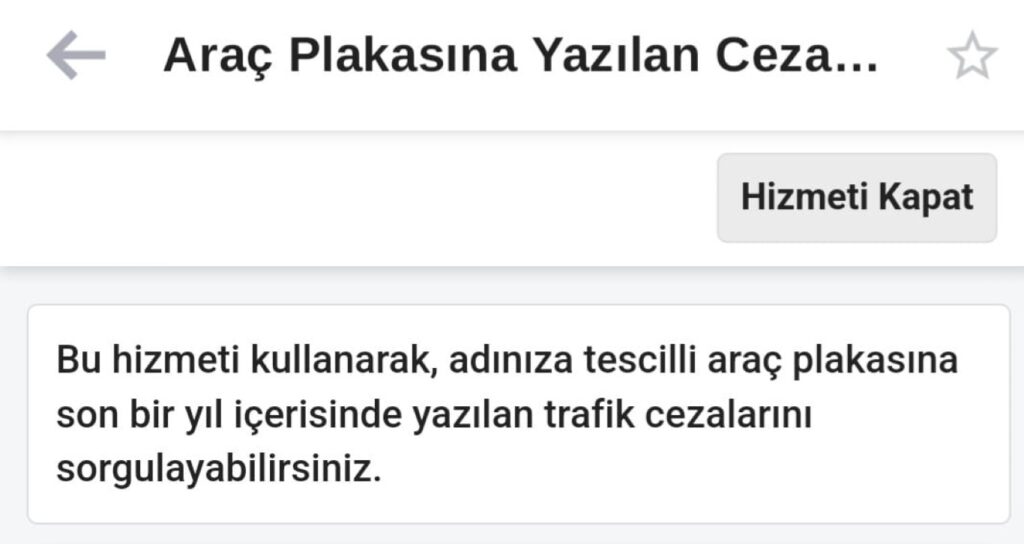 Bu hizmeti kullanarak, 18 yaşından küçük çocuğunuz adına tescilli araç plakasına son bir yıl içerisinde yazılan trafik cezalarını sorgulayabilirsiniz.
