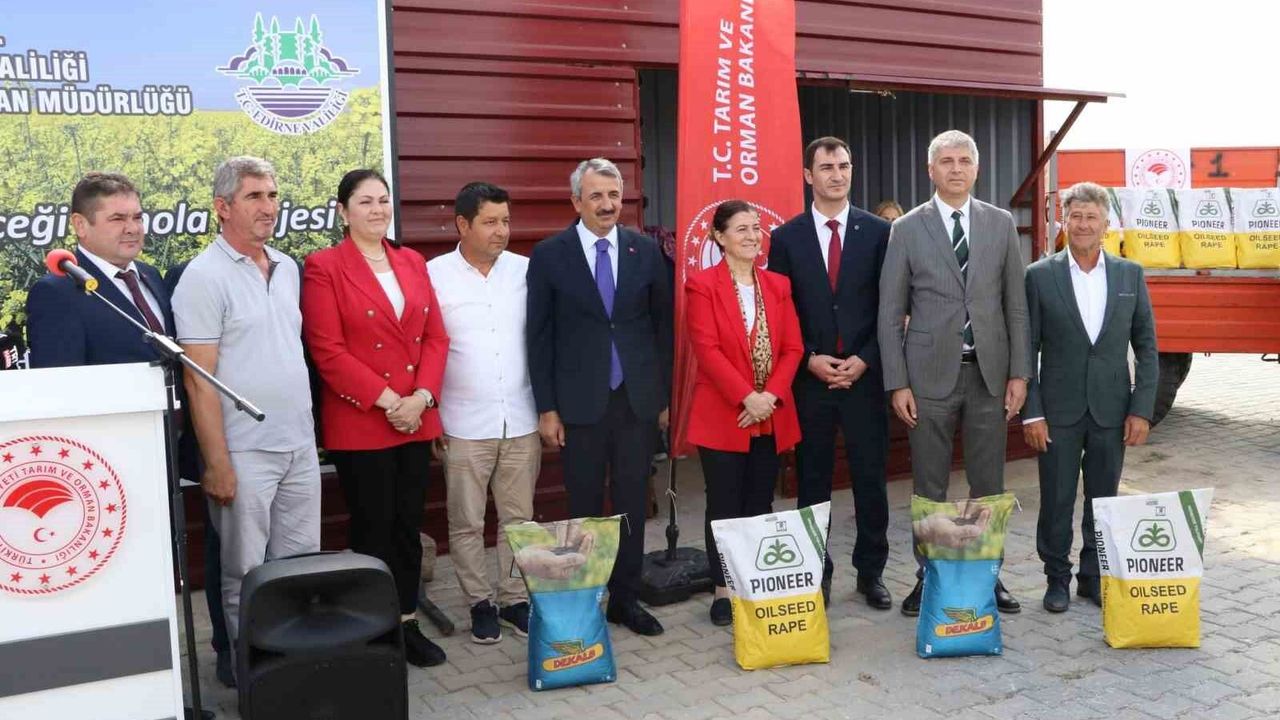 Edirne’nin Sarıçiçeği kanola tohumu dağıtım töreni Vali Yunus Sezer’in katılımıyla gerçekleşti.