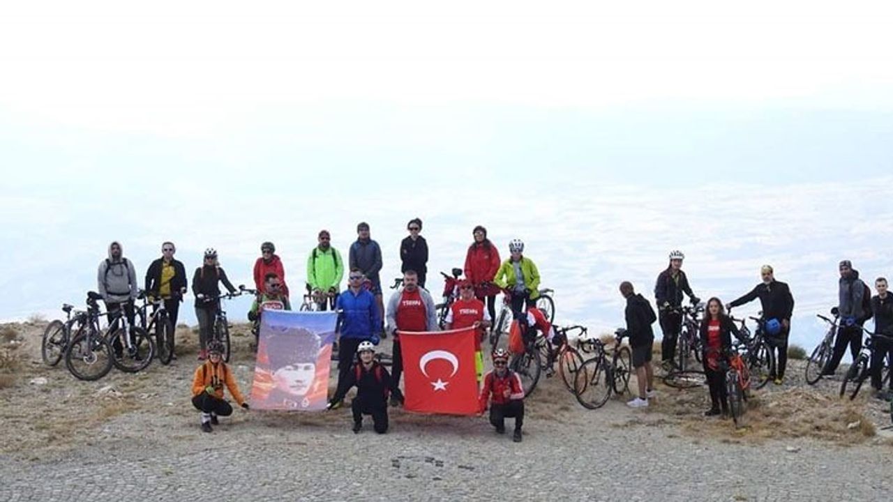 Denizli’de, Cumhuriyet’in kuruluşunun 100. yılı anısına ‘Bayrağını ve Bisikletini al gel’ etkinliği düzenlendi. 25 bisikletli, Ege Bölgesi’nin en yüksek noktası Honaz Dağı’na bisikletle çıkarak, zirvede Türk bayrağı ve Atatürk posteri açtı.