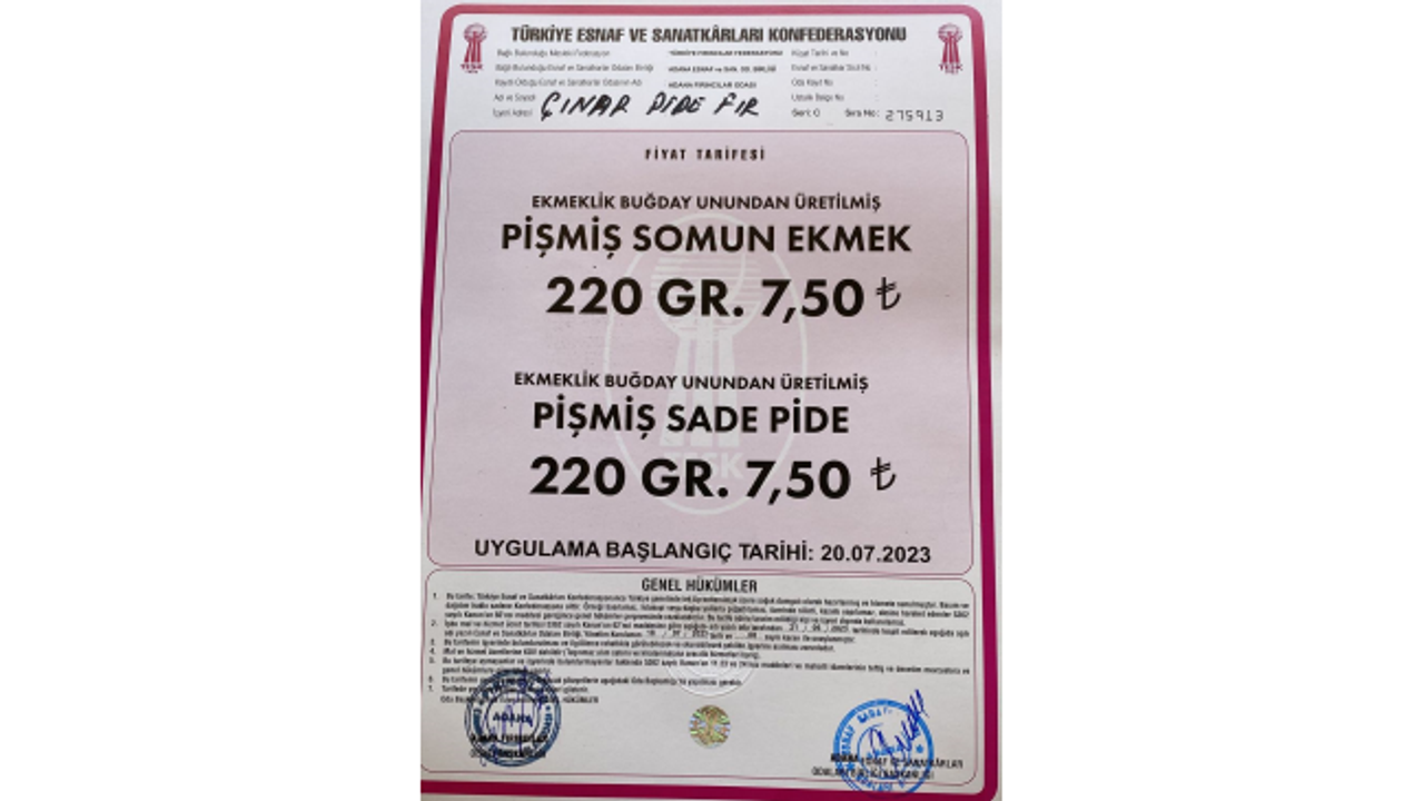 Adana’da 220 gram ekmeğin 20 Temmuz’dan itibaren 7.5 liraya satılacağı bildirildi.