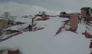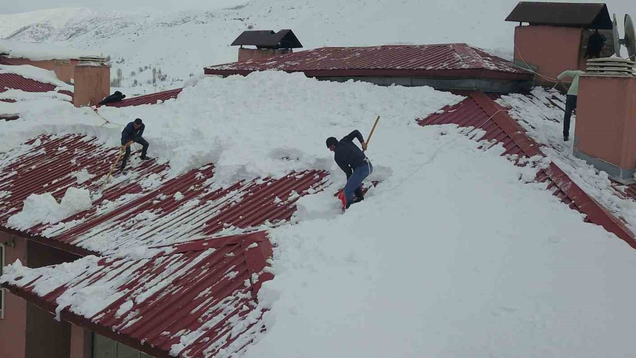 Bitlis merkeze bağlı Hüsrevpaşa Mahallesinde bulunan binaların çatılarında biriken kar kütleleri ekmek kapısı olurken, soğuk havaya ve tehlikeye rağmen bellerine bağladıkları iple kar temizledi. 6-7 katlı binaların çatılarında biriken karlar, kimileri için tehlike arz ederken kimileri içinde kış mevsiminde ekmek kapısı oldu. 3 kişilik ekiplerce yapılan kar temizleme işleminde işçiler, metrelerce yüksekten düşmemek için bir ucunu beline bağladığı ipin diğer ucunu ise binanın bacasına sabitliyor. Çatıda iki kişi kürekle karları aşağı indirirken, geri kalan bir kişi ise önlem olarak belli bir noktaya bağlanan ipi her ihtimale karşı tutarak diğerlerinin güvenliğini sağlıyor.