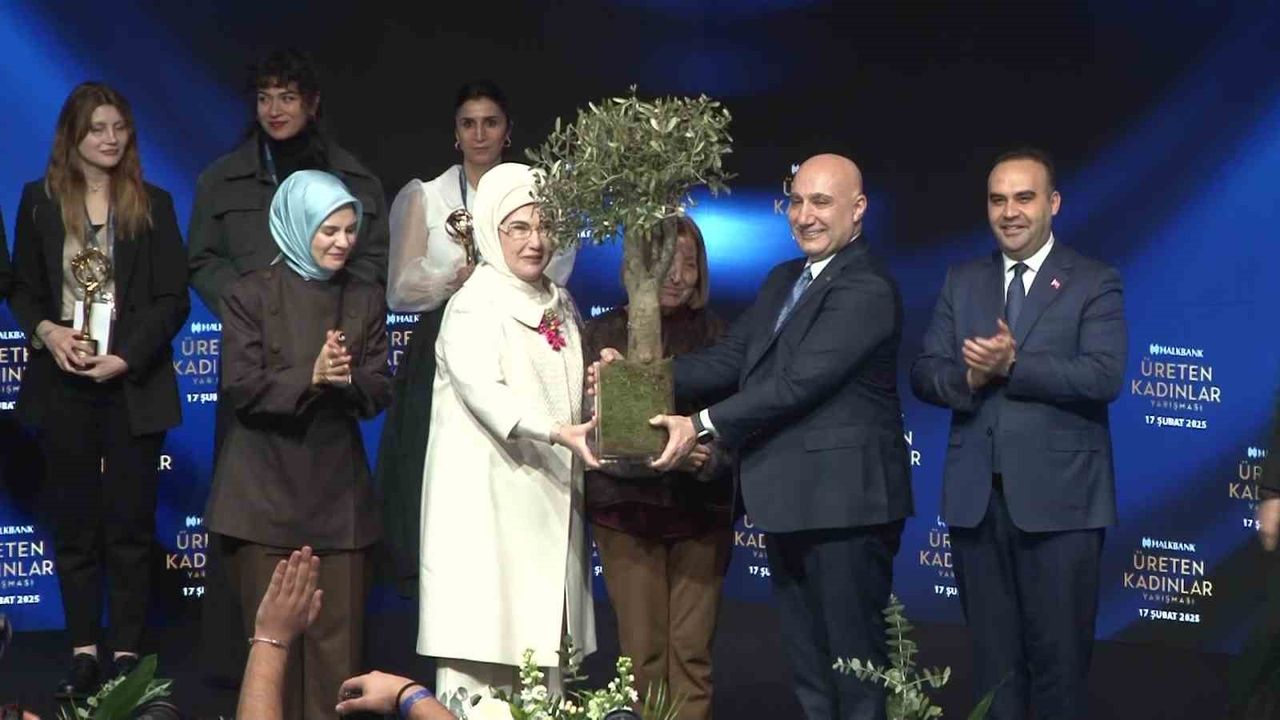 Kadınların ekonomideki gücünü ve girişimcilik dünyasındaki başarılarını görünür kılmak, onları cesaretlendirmek ve potansiyellerini ortaya çıkarmalarına destek olmak amacıyla düzenlenen Halkbank Üreten Kadınlar Yarışması Ödül Töreni’nin dördüncüsü bugün İstanbul Finans Merkezi Halkbank Genel Müdürlüğü, İstanbul Konferans Salonu’nda gerçekleştirildi. Törende yapılan konuşmaların ardından ödüle layık görülen kadın girişimcilere ödülleri takdim edildi. Ödül törenine Cumhurbaşkanı Recep Tayyip Erdoğan’ın eşi Emine Erdoğan, Aile ve Sosyal Hizmetler Bakanı Mahinur Özdemir Göktaş, Sanayi ve Teknoloji Bakanı Mehmet Fatih Kacır, Halkbank Genel Müdürü Osman Arslan katılım gösterdi.