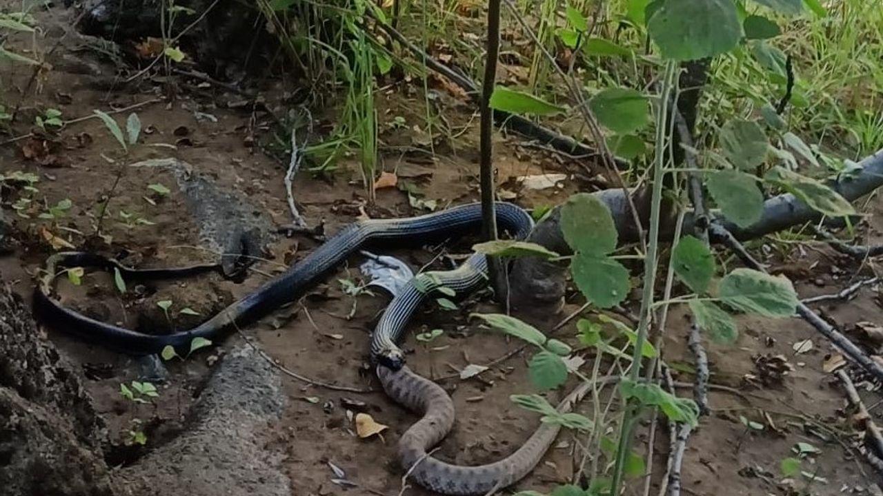 Tunceli’de, siyah yılan engerek yılanını yuttu. O anlar, bir vatandaş tarafından cep telefonu kamerasıyla kayıt altına alındı.