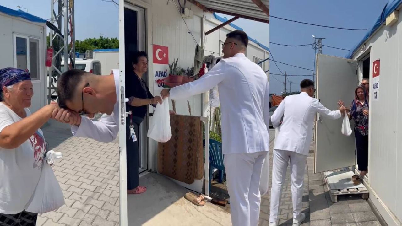 Depremde yıkılan evinden sağ çıkan ve mezuniyeti için adadığı kurban etini vatandaşlara dağıtan 25 yaşındaki Ramazan Altun, "İskenderun Teknik Üniversitesi Deniz Ulaştırma İşletme Mühendisliği bölümünden geçtiğimiz hafta mezun oldum, çok şükür. 25 yaşındayım ve Mersin’de yaşıyorum. 6 Şubat depreminde, içinde bulunduğum İskenderun Mustafa Kemal Mahallesi’ndeki yıkılan evimden çok şükür sağ çıkabildim. Sonrasında ise İskenderun’da çeşitli zorluklara rağmen eğitim hayatımı başarıyla tamamladığımda bir kurban adamak istedim. Bu kurbanı kestirip, doğrudan konteynerde yaşadığımız zor günleri paylaşan insanlara dağıtmak istedim. Bu konteyner kent, hemen okulumun karşısında bulunuyordu ve her gün gördüğüm insanların yaşadığı yerdi. Onlara bu şekilde bir veda etmek istedim. Umarım ki yaralarımızın tamamen sarıldığı bir Hatay’da tekrar kavuşabiliriz. Allah’a emanet olun" dedi.