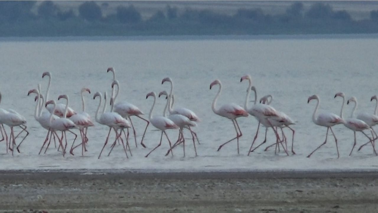 Van Gölü havzasındaki sulak alanları yaz aylarında mesken tutan binlerce flamingo, kafileler halinde Erçek Gölü’ne gelmeye başladı.