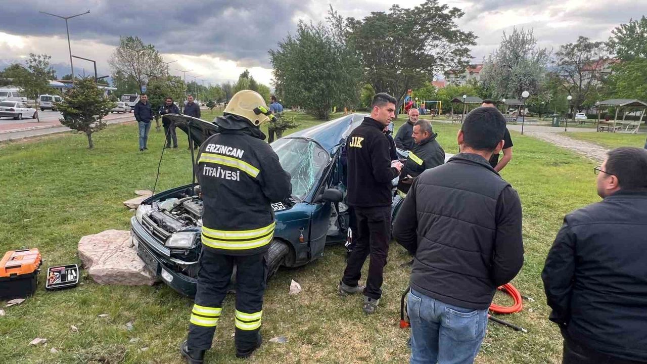 Erzincan’da takla atan otomobilde sıkışan sürücü itfaiye ekipleri tarafından kurtarıldı.
