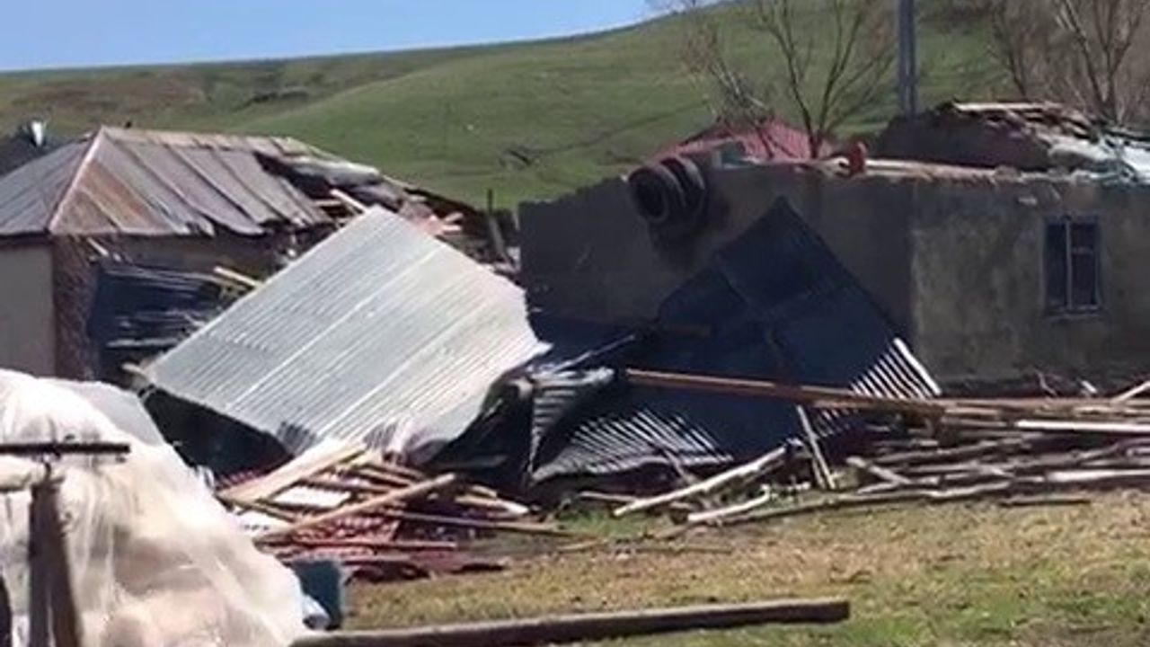 Erzurum’un Tekman ilçesinde etkili olan hortum, çok sayıda binanın çatısının uçmasına neden oldu.