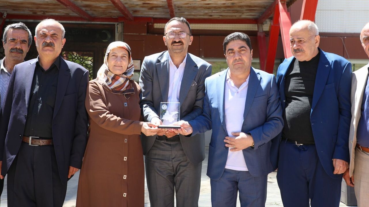 Ziyarette eş başkanlara plaket takdim eden Dernek Başkanı Sabahattin Yavuz, kendileri ile hatıra fotoğrafı çekti.