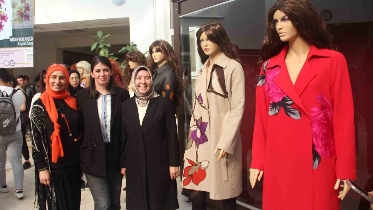 Aygün, yaptığı açıklamada, "Sürdürülebilir tasarımlar adlı sergimde 15 tane trençkot bulunmaktadır. Bu trençkotları, eski, yıpranmış en az 20 yıllık eşarpları keserek çift yönlü yapışkan telayla yüzeye yapıştırarak zig zag tekniği kullanarak aplike yaptım. Tekstil ve moda tasarımı ürünlerinin sürdürülebilirlik kapsamında aplike tekniği ile geri kazanımı, atığı değerli bir materyal haline getirir. Gerek atık gerekse el işçilik değeri yüksek tekstil materyalleri aplike tekniği ile oluşturulan farklı tasarımlar ile yeni bir yaşam döngüsü oluşturulur. Aplike tekniği ile hızlı tüketimin neden olduğu kullanılmayan tekstil ürünlerinden güncel kullanılabilir ürünler oluşturulması ile yenilikçi, sürdürülebilir bir çözüm sunulmaktadır. Günümüz modern dünyasında gerek tüketici öncesi tekstil atıkların gerekse yaşam döngüsünü tamamlamış tüketici sonrası tekstil atıkların geri dönüşüm yöntemi ile değerlendirilebilmesi sürdürülebilirlik açısından büyük bir öneme sahiptir. Süsleme tekniklerinden olan aplike tekniği sürdürülebilir tasarımda geçmişten günümüze kullanılan bir tekniktir. Trençkot tasarımlarımda aplike tekniği ile eski eşarpları değerlendirerek sürdürülebilir tasarıma katkı sağlamaya çalıştım. Sergimde tüketici sonrası tekstil atıklarının ileri dönüşüm yöntemi ile yeni giysilerde hayat bulması sağlandı. İleri dönüşümde ürün tamamen başka bir ürüne dönüşmektedir. Eski eşarp desenlerini keserek kumaş yüzeyine aktararak trençkotlar diktim. Trençkotların hepsi aynı kalıbı baz alarak tasarlandı. Çok farklı modeller tasarlasaydım daha fazla kumaş ve atık malzeme oluşacaktı. Aynı baz kalıbı kullanarak bunları aplike tekniğiyle yüzeylere bezeyerek veya süsleyerek yeni sürdürülebilir tasarımlar oluşturdum. Böylece sürdürülebilir tasarıma katkı sağlayarak farkındalık oluşturmaya çalıştım" dedi.