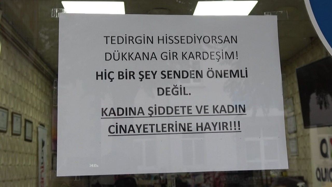 Kütahya’nın Tavşanlı ilçesinde bir esnaf, iş yerinin camına astığı yazı ile kadınların yanında olduğunu belirtti.