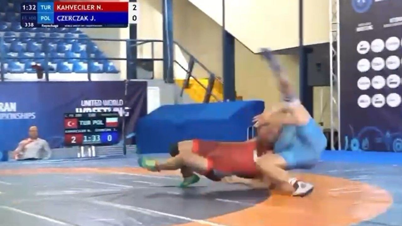 Dünya Veteranlar Güreş Şampiyonası çeyrek final mücadelesinde Nazmi Kahveciler’in Polonyalı rakibine yaptığı ’çipe’ oyunu sosyal medyada izlenme rekorları kırdı. Temizlik fabrikasında işçi olarak çalışan dünya şampiyonu güreşçinin hareketi, turnuvanın en teknik ve jenerik oyunu seçildi.