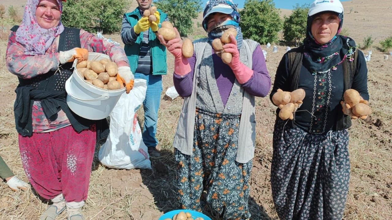 İlçede yaklaşık 40 bin dekar alanda devam eden hasatta çalışan kadınlar tarafından toplanan patatesler, çuvallara konularak depolara gönderiliyor. Kadınlarla renkli görüntülerin oluştuğu hasatta üreticiler mantar (mildiyo) hastalıklarından dolayı üzgün oldukları görüldü.