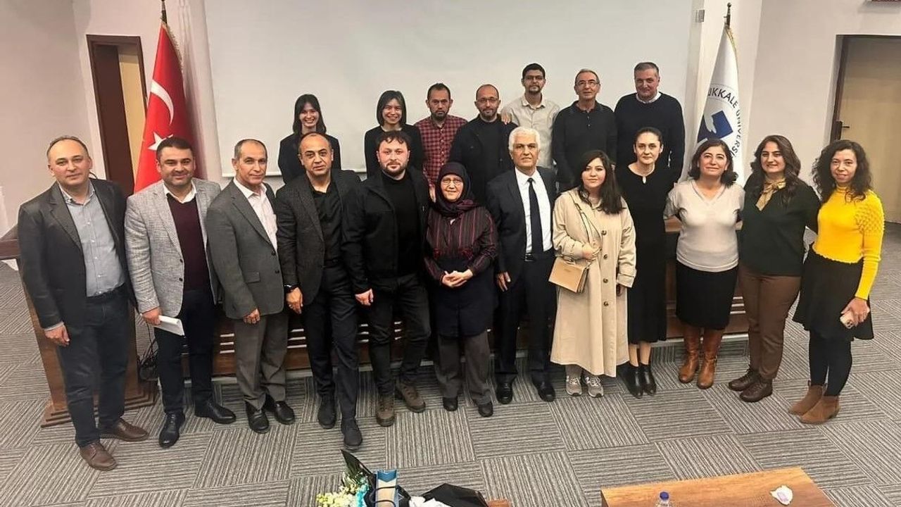 Emekli öğretim üyesi için hazırlanan, fotoğrafların yer aldığı slayt gösterisinin ardından törende bulunan akademisyenler, emekli Dr. Öğr. Üyesi Şahin Ceran’a ilişkin hatıralarını karşılıklı sohbet ortamında paylaştı.