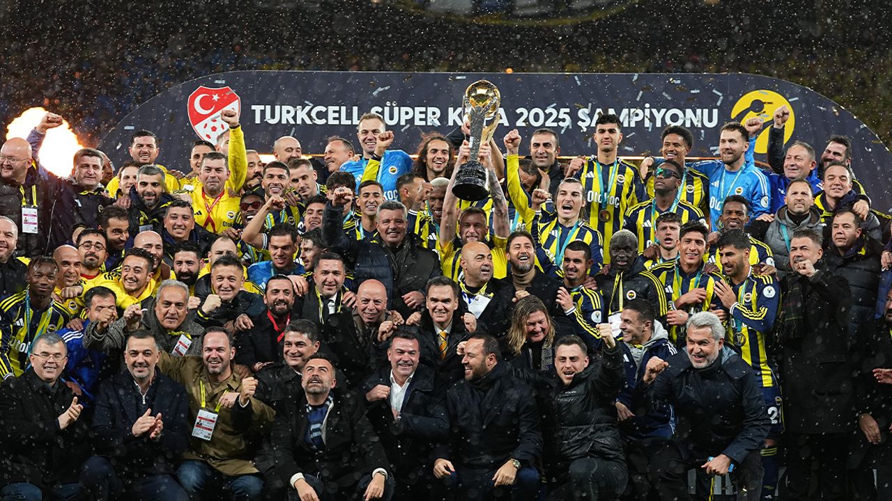 Turkcell Süper Kupa Finali’nde Fenerbahçe, Atatürk Olimpiyat Stadyumu’nda karşılaştığı Galatasaray’ı 2-0 yendi. Sarı-lacivertliler son düdükle birlikte büyük bir sevinç yaşadı. Müsabakanın ardından sahaya kupa töreni için platform hazırlandı. İlk olarak gazetecilerin oylarıyla maçın oyuncusu seçilen Matteo Guendouzi, ödülünü aldı. Daha sonra platforma gelen Fenerbahçeli oyunculara tek tek madalyaları takdim edildi.