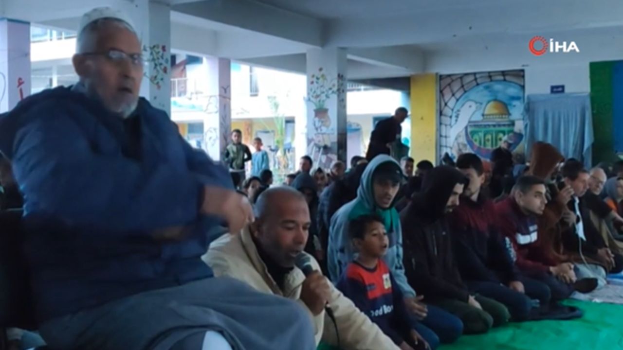 Gazze Şeridi’nin merkezindeki Maghazi Mülteci Kampı’nda da saldırılar nedeniyle yerinden edilen Filistinler bayram namazını eda etti. Bayram namazı hutbesini okuyan Şeyh Abdul Rahim Al-Talaa, Filistinlileri sabırlı ve kararlı olmaya, İsrail’e mesaj vermek için üzüntülerine rağmen bayramı sevinçle karşılamaya çağırdı.
