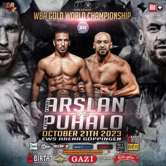 Dünya şampiyonu profesyonel boksör Fırat Arslan, WBA dünya şampiyonluğu altın kemer karşılaşmasıyla ringlere veda etmek için son kez eldiven giymeye hazırlanıyor. 21 Ekim Cumartesi gecesi Almanya’nın Göppingen kentinde bulunan EWS Arena’da Avrupa şampiyonu Bosna Hersekli boksör Edin Puhalo’ya karşı jübile maçında ringe çıkacak.