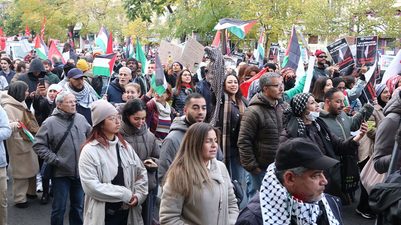 Fransa’nın başkenti Paris’te binlerce kişi Filistin’e destek için yürüdü. Republique Meydanı'nda başlayan ve işçi sendikaları ile sol partilerin desteklediği gösteride, “Acil ateşkes sağlansın”, “Gazze'deki katliam durdurulsun”, "İsrail'in bu yaptığı savaş değil soykırım”, “Filistin özgür kalacak”, “Gazze asla İsrail'in sömürgesi olmayacak” sloganları atan Filistin destekçileri, “Macron işbirlikçi”, “İsrail'e birileri yeter demeli” gibi sloganlarla İsrail ve Fransa Cumhurbaşkanı Emmanuel Macron’a tepki gösterdi. Sık sık İsrail Başbakanı Binyamin Netanyahu için “katil” sloganı atan göstericiler, ABD Başkanı Joe Biden ile İsrail Başbakanı Netanyahu’nun eli kanlı pankartlarını taşıdı.
