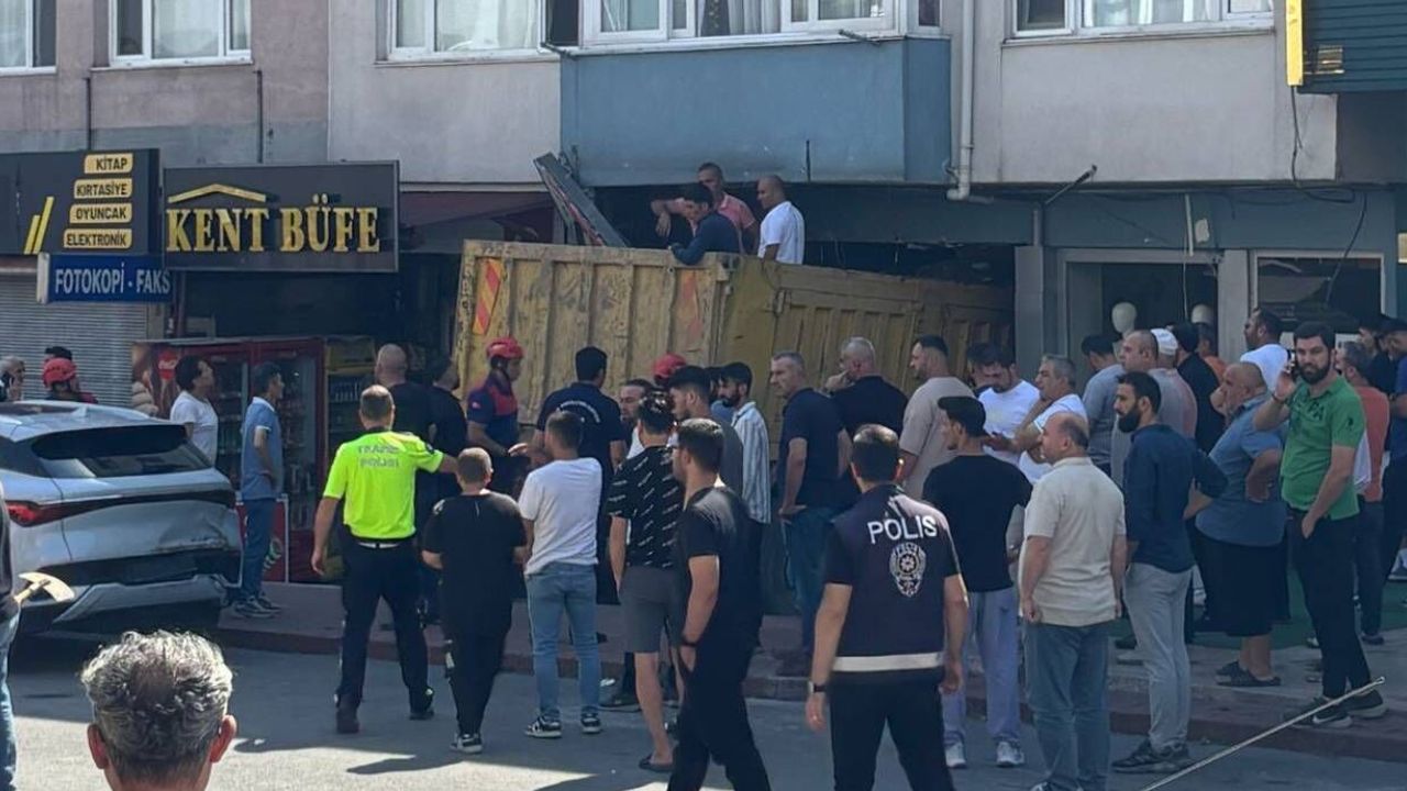 Kaza nedeniyle yol ulaşıma kapatılırken, kamyonun dükkana girdiği anların bir araç kamerasına saniye saniye yansıdı.