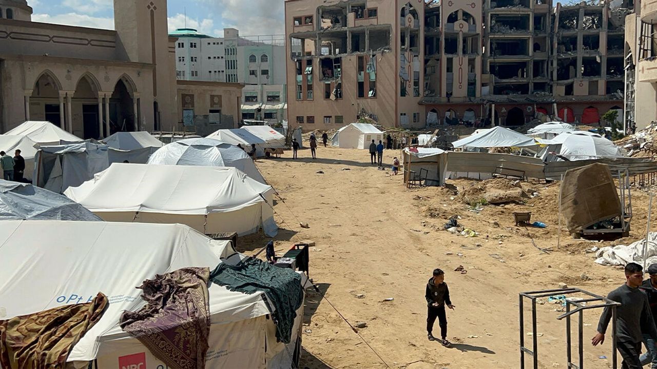 Filistinliler, saldırılar sonucu yıkılan Gazze İslam Üniversitesi'nin avlusuna çadırlar kurdu. Üniversiteye ait yıkılmış binalar arasında hayatlarını sürdürmeye çalışan Filistinliler, temel ihtiyaçlara erişemiyor. Kıtlıkla karşı karşıya olan Filistinliler, İsrail ambargosu nedeniyle içme suyu veya yakıt bulamıyor.