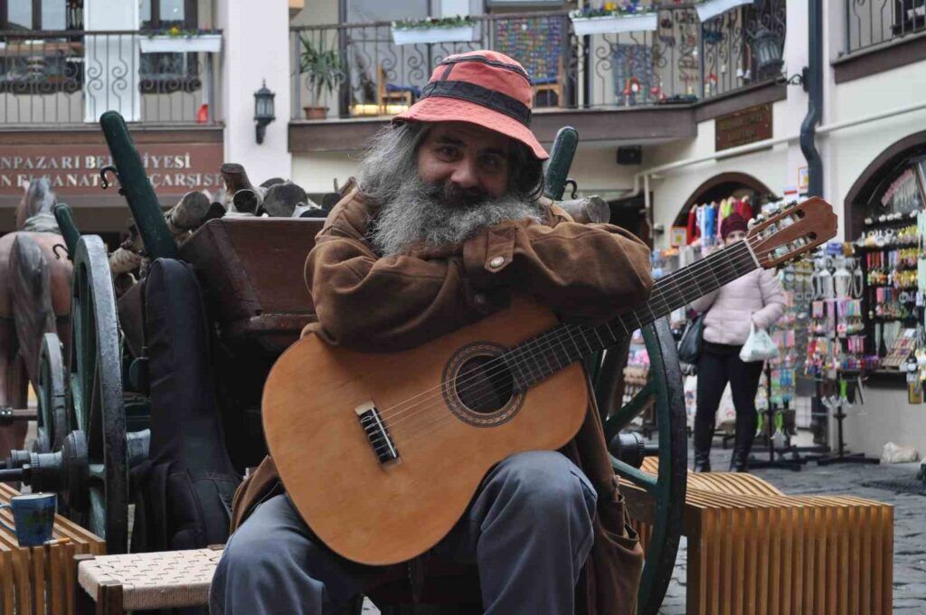“Kaza sonrası bana Eskişehir tavsiye edildi, buranın nem oranı düşük olduğu için havasının suyunun bana iyi geleceği söylendi. Sonrasında buraya yerleştim. Bir yandan da yaşamımı idame ettirebilmek için bir gelir elde etmem gerekiyordu. Öyle olunca burada sokak müzisyenliğine başladım. Odunpazarı Belediyesi ve Odunpazarı Kent Konseyi bana bu noktayı tavsiye etti. Ben de yaklaşık 12 yıldır buradayım ve o zamandan beri yerel ve uluslararası turizme hizmet ediyorum. Buraya Türkiye’nin her yerinden insanlar geliyor.”