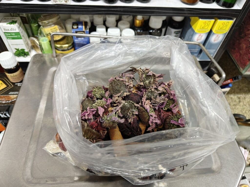 Bitkisel ürünlerin hem geçmeyen öksürüğe hem de grip gibi hastalıklara iyi geldiğini söyleyen Aktar Rahmetullah Sadıkoğlu; "Vatandaşlarımızdan gelen şikayetlerimizin çoğu geçmeyen kuru öksürük, nezle ve grip gibi şikayetler oluyor. Bu sene de bu hastalıklar çok ağır atlatılıyor. Bunun için de hibiskus, yaş zencefil ve ekinezya kullanırlarsa çok iyi olur. Bunlar C vitamini takviyesi olarak geçer. C vitaminini çoğu zaman portakaldan alabilirsiniz ama hibiskustan, ekinezyadan alınan C vitamini daha yüksek olur. Tamamen bitkisel ve çay şeklinde demlenip tüketilirse çok iyi gelir ve hiçbir şey kalmaz. Ayrıca özel kendi yaptığımız macunlar var. Andız pekmezli, zencefilli, ballı macunlar bunlar. Bunlar geçmeyen kuru öksürüğü anında alır. Bunların da balgam sökücülüğü ve akciğerdeki iltihaplanmalara bire birdir" dedi.
