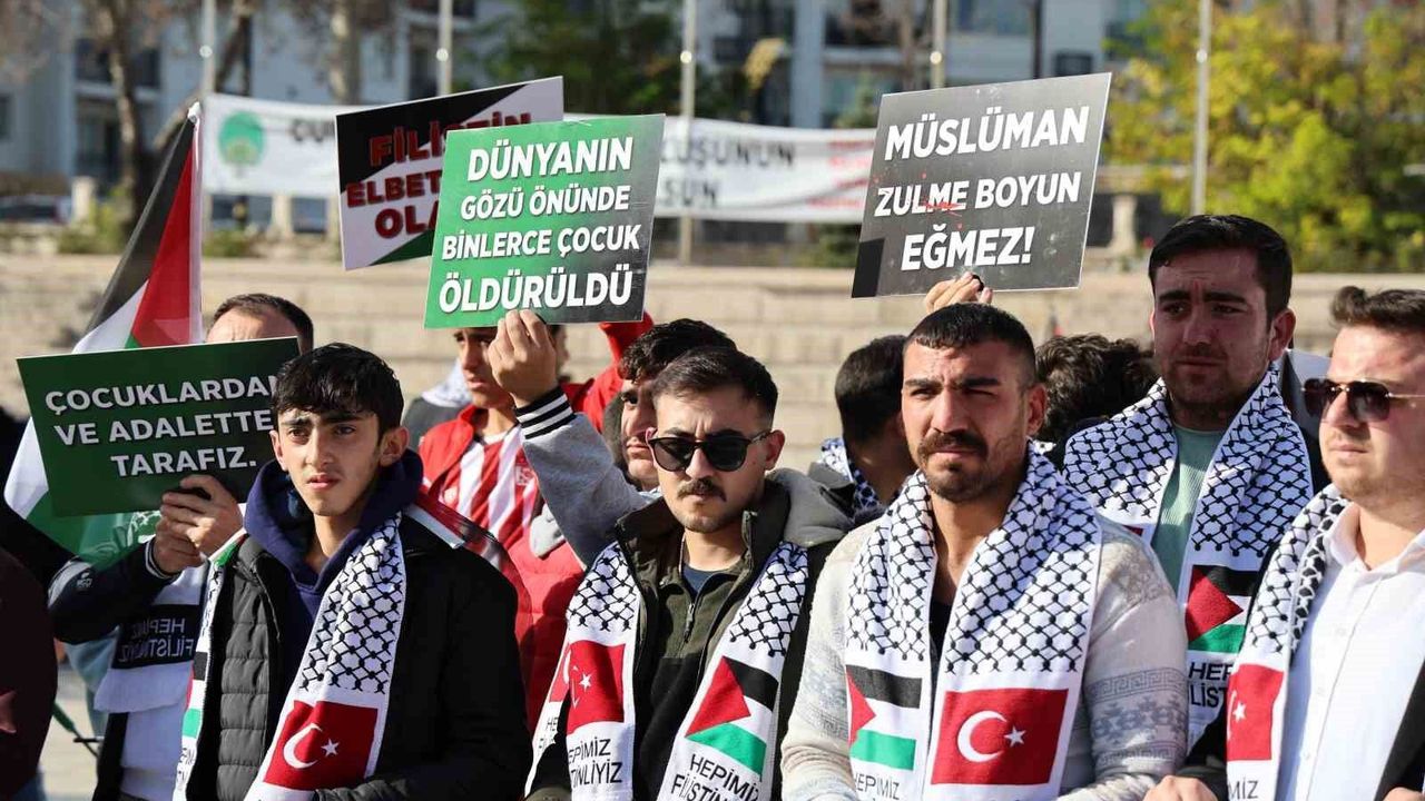 Kent meydanında açıklama yapan Ak Parti Sivas Gençlik Kolları Başkanı Fatih Sakarya, Bugün burada Gazze’den günlerdir yükselen acı feryatlara, akan onca masum kana, dökülen gözyaşlarına seyirci kalamayan; mazlum ve masum coğrafyalar için her fırsatta hakkı ve hakikati haykıran Ak Parti Sivas İl Gençlik Kolları Başkanlığı olarak #SayStop demek üzere toplanmış bulunmaktayız.1948 Yılından bu yana devam eden çatışmaların kronikleşmiş bir hal aldığı Filistin’de; katil İsrail 7 Ekim’den bugüne küresel vicdanı derinden yaralayan, çok sayıda sivil can kaybının yaşandığı yeni bir çatışma ortamı oluşturmuştur. Her karış toprağının yoğun bombardımana tabi tutulduğu, orantısız gücün, savaşlarda dahi kullanımı yasak olan fosfor bombalarının kullanıldığı, en temel insan haklarının dahi hiçe sayıldığı, insanlık onurunun ayaklar altına alındığı Filistin’de, İsrail tarihe bir kez daha adını kara leke ile yazdırmıştır. Gazze’deki yaşlı, çocuk, kadın her bir sivilin su ve gıda dahil temel ihtiyaçları edinmelerini bile engelleyen zalim İsrail’in bu gaddarlıkları karşısında ne yazık ki sözde insan hakları savunucuları sus pus olmuş hatta kimileri İsrail’e destek için sıraya gelmiştir” dedi.