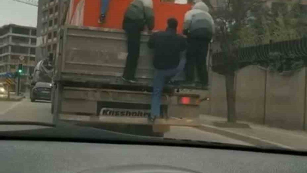 Olay, merkez Osmangazi ilçesinde meydana geldi. Sürücüsü ve plakası henüz öğrenilemeyen kamyonun arkasına 3 genç kaçak bindi. Canlarını hiçe sayan gençler, kamyonun arkasında seyahat etmeye başladı. Tehlikeli anlar, saniye saniye amatör kameraya yansıdı.