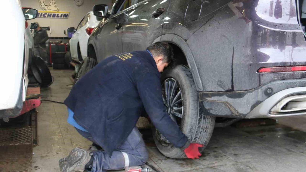 Sivas’ta Ata Sanayi Sitesi’nde hizmet veren bir lastikçi dükkanı işlerini aksatmamak ve müşterilerini mağdur etmemek için bu özel günde de çalıştı. Sabahın erken saatlerinde kepenk açan esnaf, otomobil lastikleri değiştirerek, evlerine ekmek götürme derdine düştü.