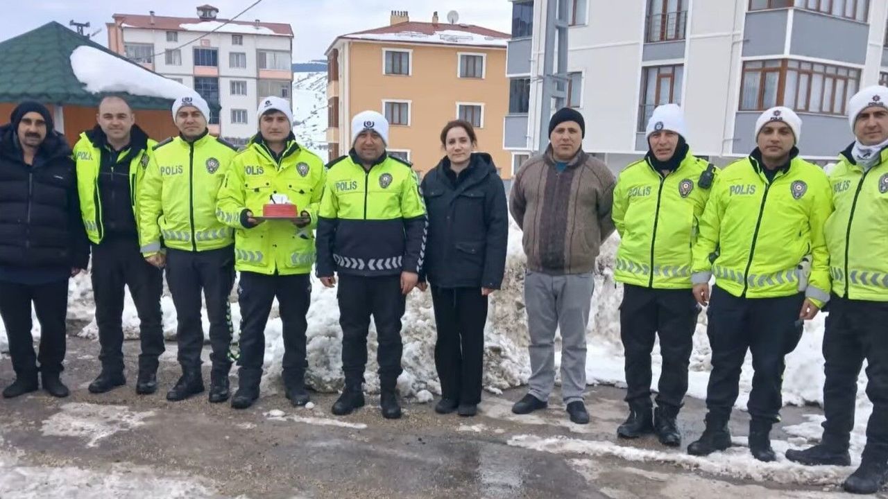 Erzincan İl Emniyet Müdürlüğü Refahiye Bölge Trafik Denetleme İstasyon Amirliği ekipleri görevdeki ekip arkadaşlarına doğum günü sürprizi yaptı.