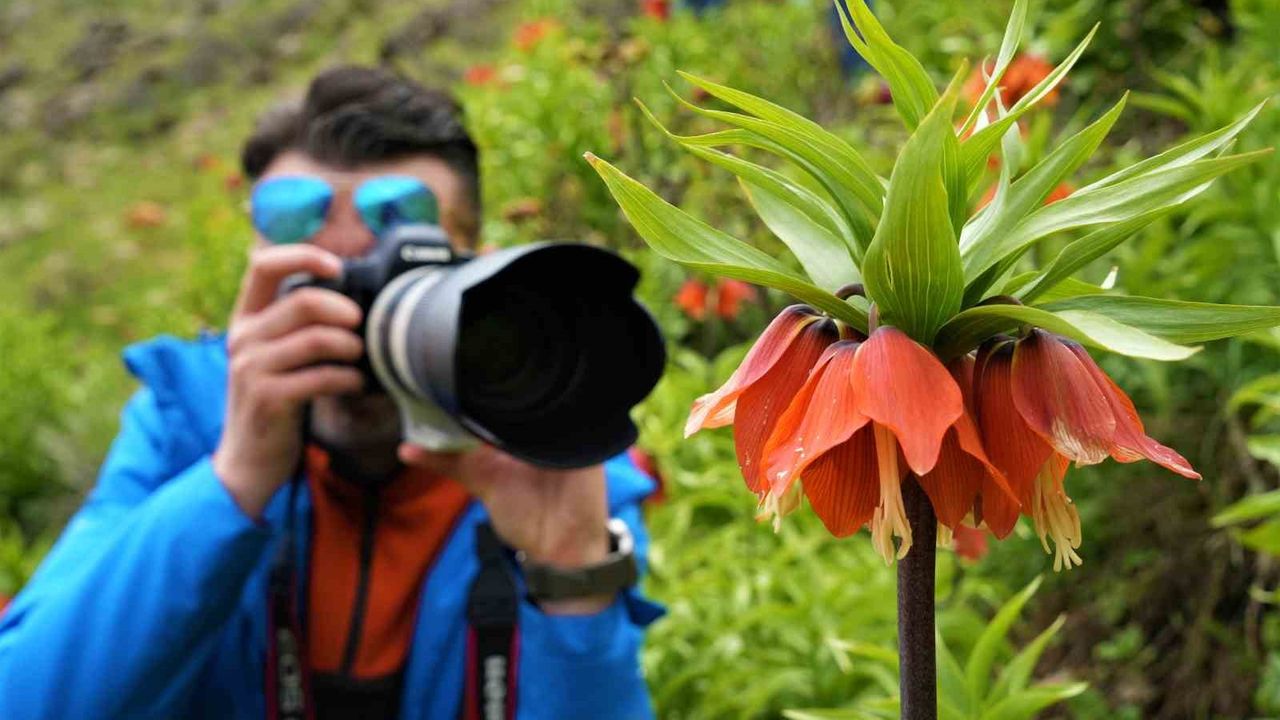 Muş’ta bin 800 rakımlı Karaağaç Dağı’nın zirvesinde yetişen ve sadece 20 gün canlı kalabilen ters laleleri görebilmek için 500 kilometre yol gelen ziyaretçiler, zorlu yürüyüşün ardından ulaştıkları çiçeklere dokunmaya cesaret edemedi.