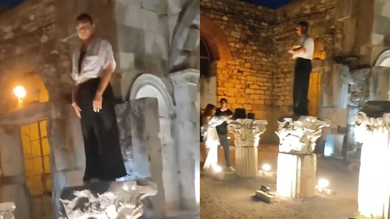 Olay, İzmir’in Selçuk ilçesinde bulunan Efes Antik Kenti’nde meydana geldi. Akşam saatlerinde antik kente gelen genç bir kız, tarihi kalıntıların üzerine çıktı. Dans figürlerini andıran hareketler yaptığı görülen ve poz veren genç kızın bu hareketi çevreden de tepki çekti. O sırada bir vatandaş, “Buraya çıkıyorsunuz, yasak değil mi?” diye tepki gösterdi. O anlar cep telefonu kamerasına yansırken güvenlik görevlerinin her gün binlerce turistin ziyaret ettiği antik kentte bu duruma müdahale etmemesi sosyal medyada da çok konuşuldu.