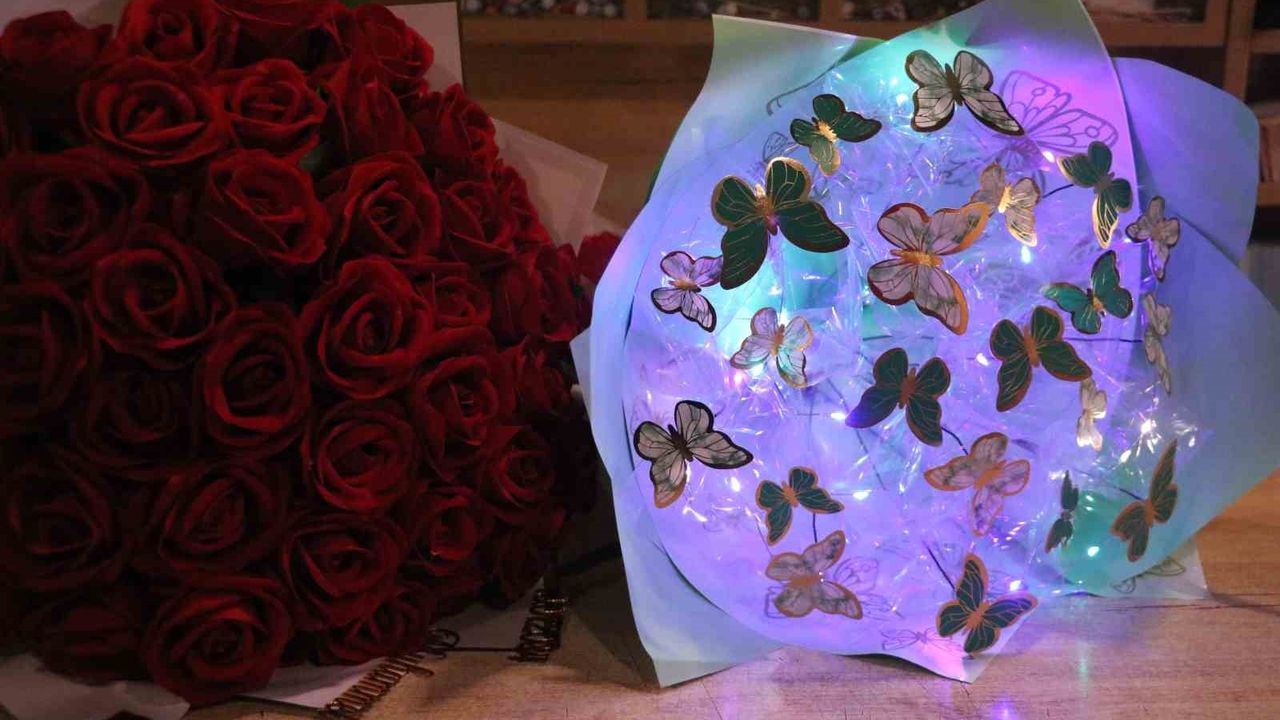 Son dönemde çiçek aranjmanları dünyasında dikkat çeken yenilik ‘led ışıklı kelebek buketler’ oldu. Canlı veya cansız çiçekler yerine, bu şık ve modern buketler, estetik ve işlevsel açıdan büyük ilgi görüyor. Kelebeklerin zarif görünümleri ve led ışıkların verdiği parıltı ile oluşturulan bu buketler, özel günlerde ve etkinliklerde adeta bir görsel şölen sunuyor. Buketlerin içindeki led ışıklar, karanlık ortamlara farklı bir ambiyans katarken, aynı zamanda dekoratif bir aydınlatma işlevi görüyor. 25 yılı aşkındır çiçekçilik yaptığını söyleyen Oğuz Öcal, “Önceden bir dal gül verilirdi şimdi ise ışıklı kelebek buketi veriliyor” dedi.