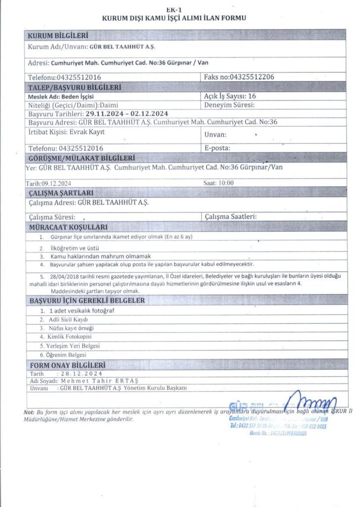 Başvuruda bulunmak isteyen adayların, gerekli belgeleri en geç iki gün içinde belediyeye teslim etmeleri gerekiyor. Ancak bu kısa süreli ilan süresi, birçok kişinin başvuru yapmasını zorlaştırabilir.