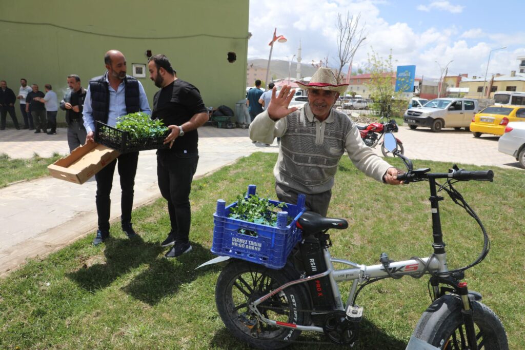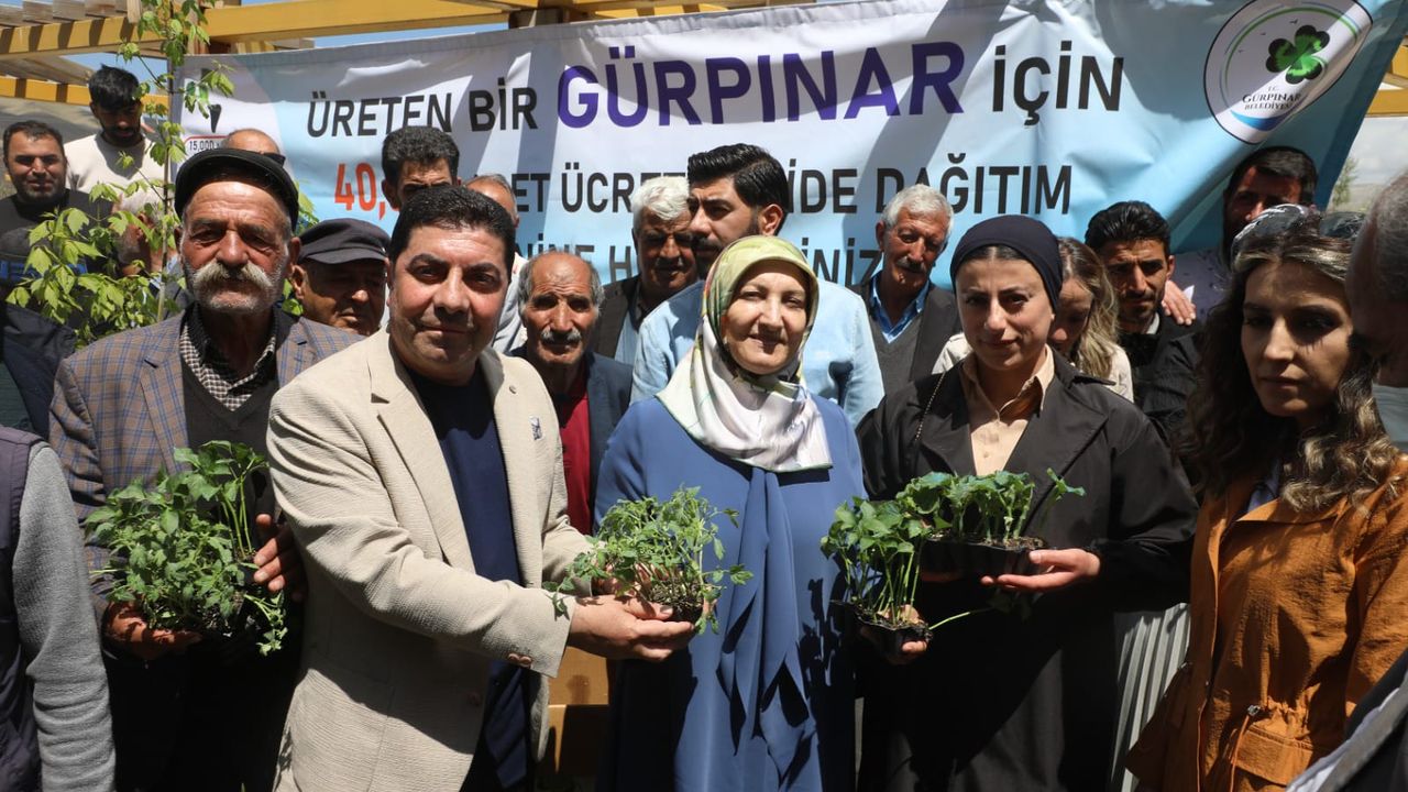 Fide dağıtımı etkinliğine Gürpınar Belediyesi Eşbaşkanları Mukaddes Karakoç ve M. Tahir Ertaş da katılarak çiftçilere fidelerini teslim etti.