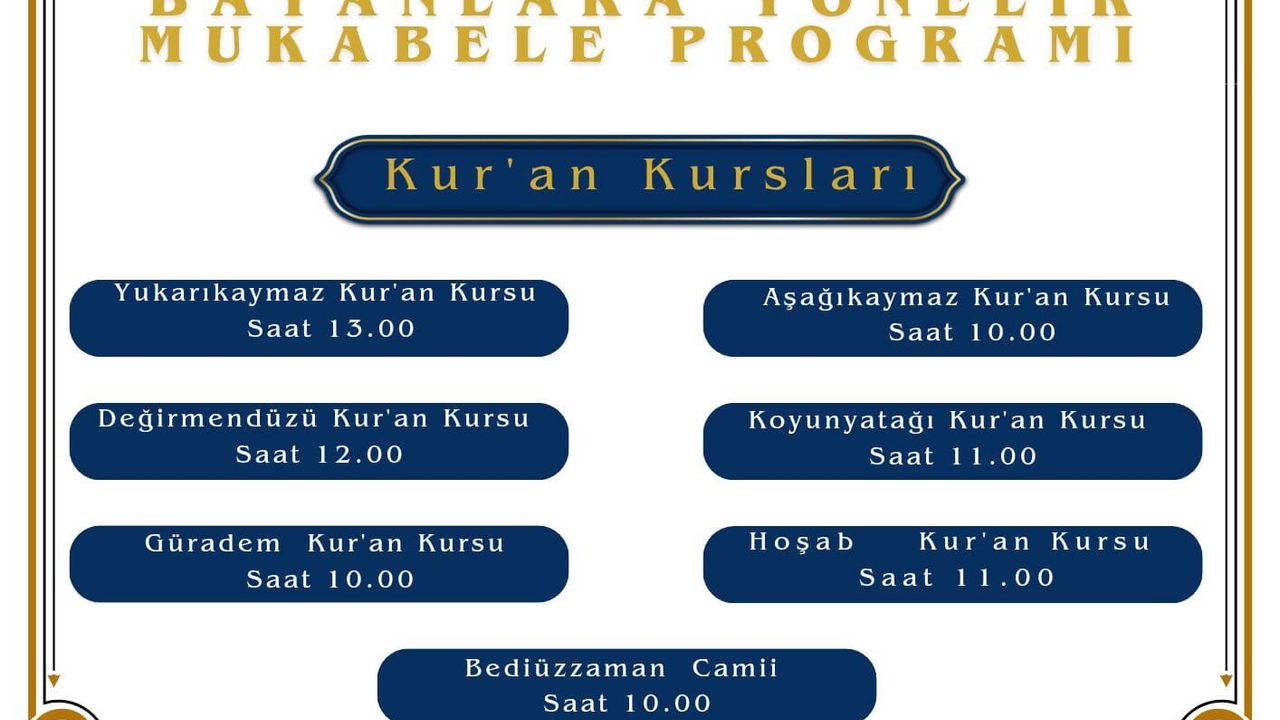 Koyun Yatağı Kur’an Kursu: 11:00