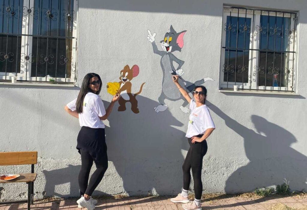 Proje kapsamında okulun dış duvarları, öğrencilerin ilgisini çekecek çizgi film kahramanlarının resimleriyle boyandı. Hem öğretmenler hem de öğrenciler, yeni görüntüyle büyük bir mutluluk yaşadı.