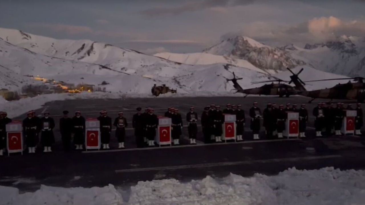 Irak’ın kuzeyindeki Pençe-Kilit Harekatı bölgesinde teröristlerle çıkan çatışmada şehit olan 6 asker için Hakkari’de tören düzenlendi. Şehitlerin cenazelerinin tören alanına getirilmesinin ardından öz geçmişleri okundu. Yapılan duaların ardından Piyade Teğmen Ramazan Günay İzmir’e, Piyade Uzman Çavuş Mehmet Serinkan Denizli’nin Tavas ilçesine, Piyade Uzman Onbaşı İsmail Yazıcı Zonguldak’ın Karadeniz Ereğli ilçesine, Piyade Sözleşmeli Er Yasin Karaca Tokat’ın Almus ilçesine, Piyade Sözleşmeli Er Çağatay Erenoğlu Sinop’un Boyabat ilçesine ve Piyade Sözleşmeli Er Emre Taşkın’ın cenazesi Malatya’ya gönderilmek üzere helikopterle Yüksekova Selehattin Eyübbi Havaalanına götürüldü. Şehitler buradan da memleketlerine uğurlanacak.