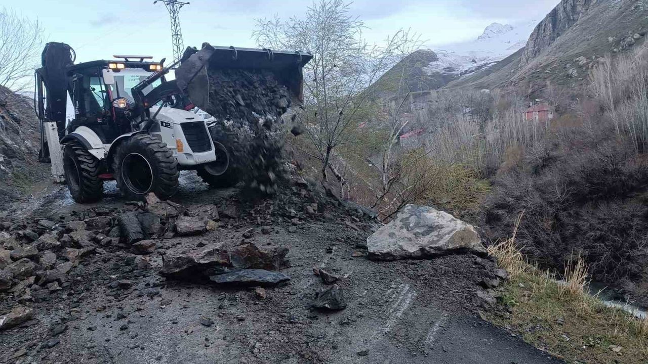 Hakkari’de yaklaşık bir haftadır etkili olan kar yağışı ve yağmur nedeniyle yola düşen kayalar temizlendi.