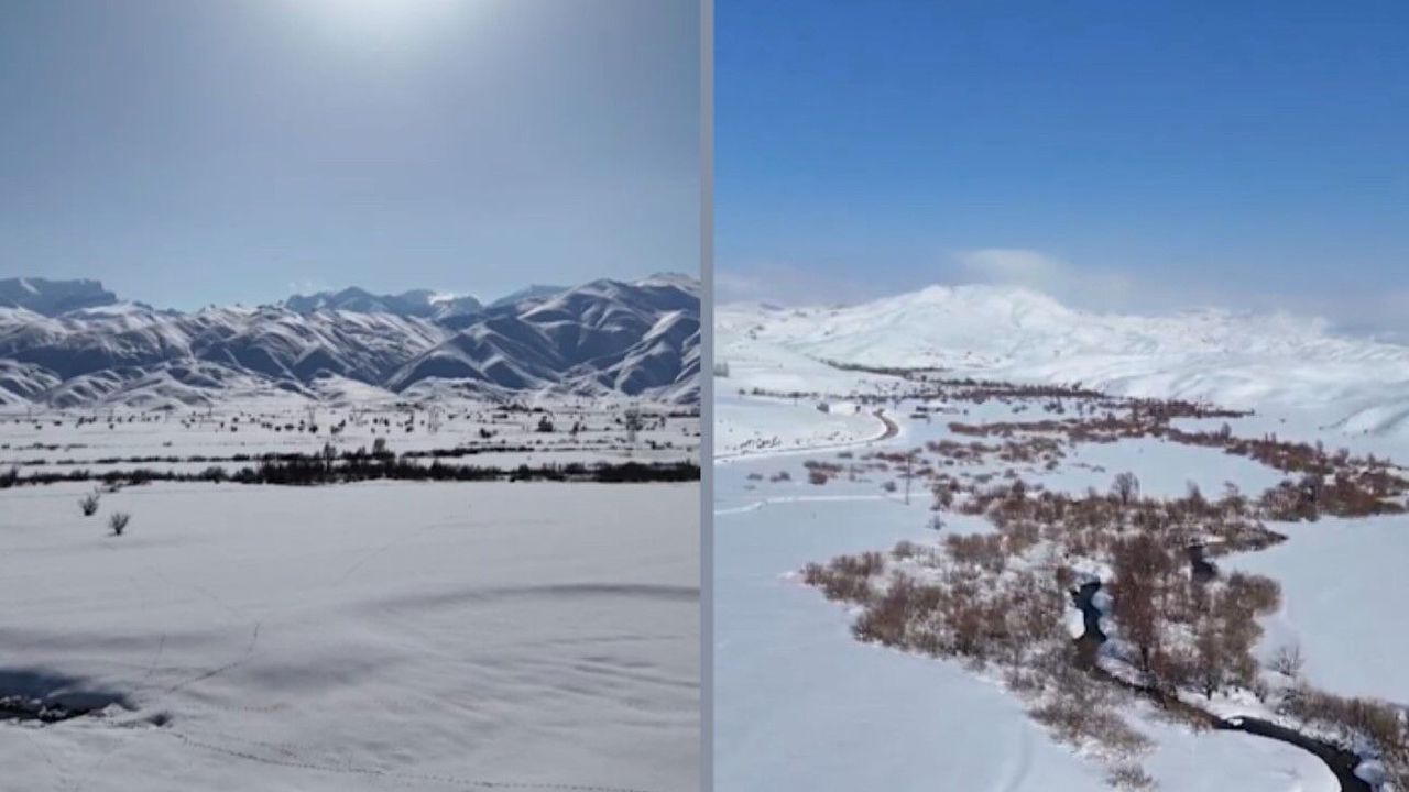 İlçenin dümdüz ovasının içinde kıvrılarak uzanan menderesler, etrafını saran karlı dağlarla görsel şölen sunuyor. Yaz aylarında etrafını saran sarı çiçeklerle renklenen menderesler, kış aylarında ise kar altındaki manzarasıyla kartpostallık görüntüler sunarken hemen etrafını saran dağlar ise hayran bırakıyor. Mendereslerin karlı dağlarla bütünleşmesini dron ile görüntüleyen doğasever Hakan Zanyar Aykut, doğanın güzelliklerini gözler önüne serdi.