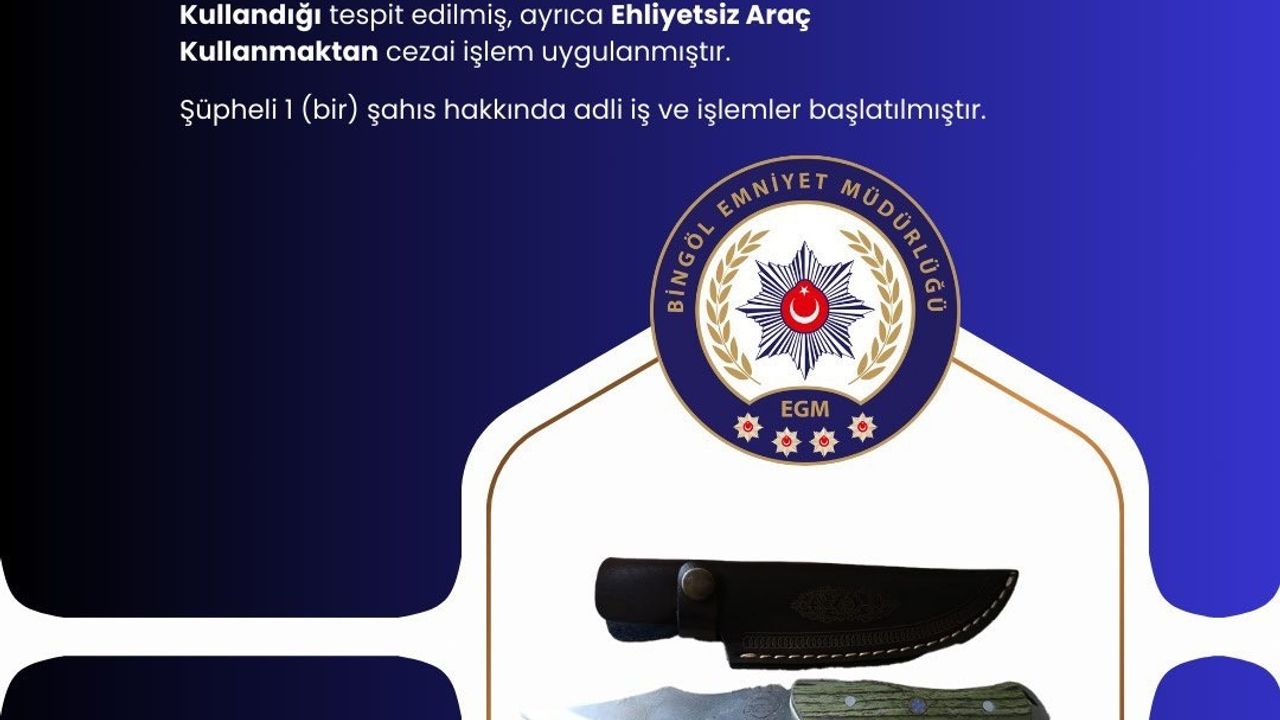 Bingöl Emniyet Müdürlüğü Asayiş Şube Müdürlüğü ekiplerince uygulama gerçekleştirildi. Uygulamada yapılan aramalarda, yakalama kaçağı olarak aranan şahıs, üzerinde bıçakla, başkasına ait kimlikle, ehliyetsiz araç kullanırken yakalandı. Şahıs hakkında adli ve idari işlemlere başlandığı belirtildi.