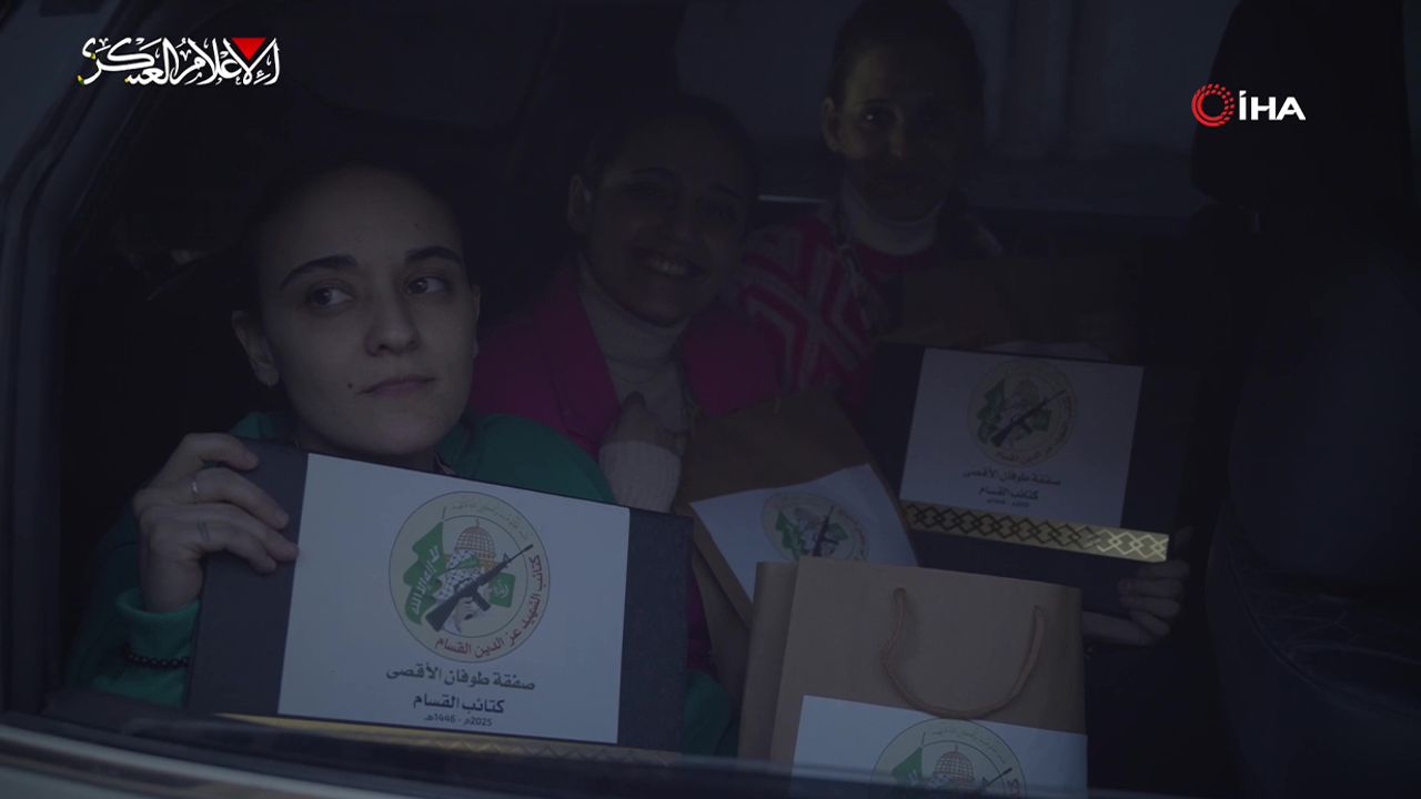 Hamas'ın askeri kanadı İzzeddin El Kassam Tugayları, Gazze Şeridi'nde ateşkes ve esir takası anlaşması kapsamında serbest bıraktığı 3 İsrailli esirin görüntülerini yayınladı. Görüntülerde, Romi Gonen, Emily Damari ve Doron Steinbrecher adlı esirlerin Kassam Tugayları üyeleri ile konvoy halinde Kızılhaç'a teslim edilecekleri noktaya getirildikleri görüldü.