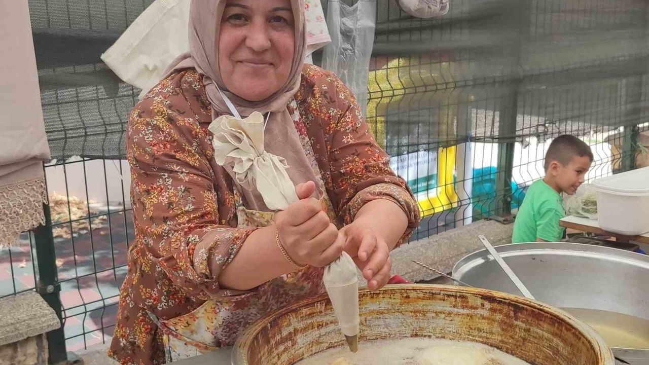 Kahramanmaraş’ta 2 çocuk annesi tatlı yaparak evini geçindiriyor.