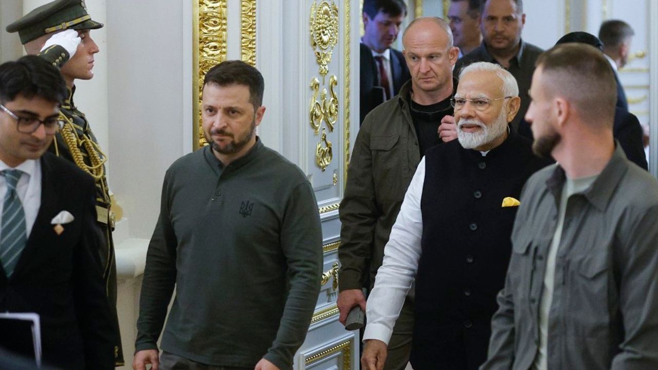 Başbakan Modi, Devlet Başkanlığı binasında Zelenskiy tarafından karşılandı. İki lider, görüşme öncesi önemli açıklamalarda bulundu. Ukrayna'ya “barış mesajıyla” geldiğini belirten Modi, Rusya-Ukrayna arasında en kısa sürede diyalog kurulması çağrısında bulundu.