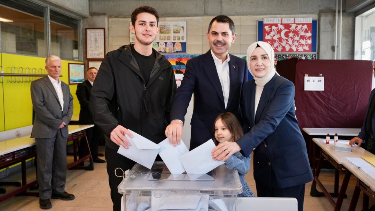 İBB Başkan Adayı Murat Kurum, eşi Şengül Kurum, oğlu Mehmet ve kızı Zehra ile birlikte 11.00 sıralarında Kağıthane İmece İlkokulu’na geldi. Vatandaşların sevgi gösterilerinde bulunduğu Kurum, okula güçlükle girebildi. Okul içerisinde de alkışlarla karşılanan Kurum, 1166 nolu sandıkta ailesi ile birlikte oyunu kullandı.